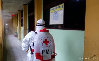 PMI dan TNI Semprotkan Diinfektan di Masjid Agung Al-Aqsa Klaten