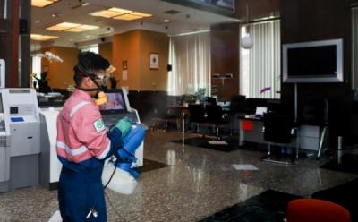Penyemprotan Cairan Disinfektan di Area Perkantoran
