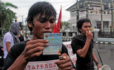 Kesal Proyek E-KTP Dikorupsi, Mahasiswa Bakar KTP