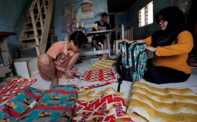 Kreatif, Seorang Ibu dan Pekerjanya Membuat Tas dan Payung dari Limbah Plastik