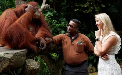 Ketika Petenis Cantik Ukraina Bercengkerama dengan Orangutan di Kebun Binatang Singapura