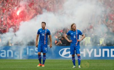 Islandia vs Hungaria 1-1, Penonton Nyalakan Flare