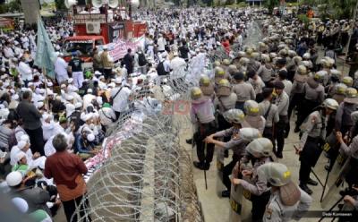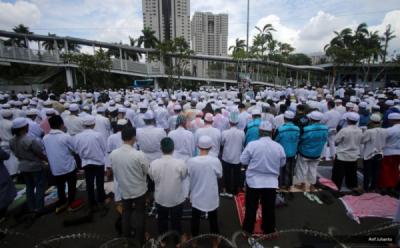 Massa FPI Gelar Salat Zuhur di Jl Sudirman Depan Polda Metro Jaya