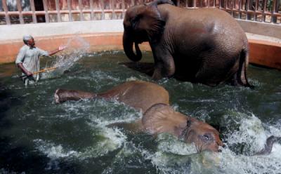 Byur! Serunya Gajah-Gajah Ini Berendam di Kolam Raksasa