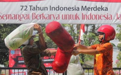 Lomba Gebuk Bantal Jadi Hiburan Warga
