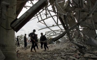 TNI dan Santri Gotong-royong Bersihkan Puing Masjid Pascagempa Aceh