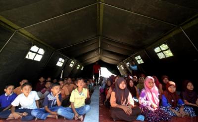 Puluhan Pelajar Korban Gempa Pidie Belajar di Tenda Darurat