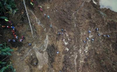 Foto Udara Tim SAR Gabungan Masih Mencari Korban Tertimbun Akiibat Gempa Cianjur