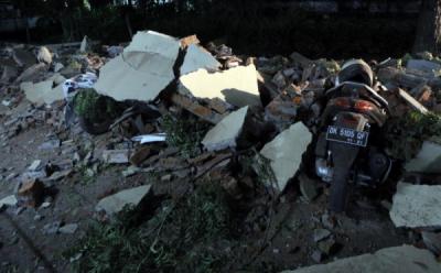 Motor-Motor di Bali Ringsek Tertimpa Bangunan Roboh Dampak Gempa Lombok