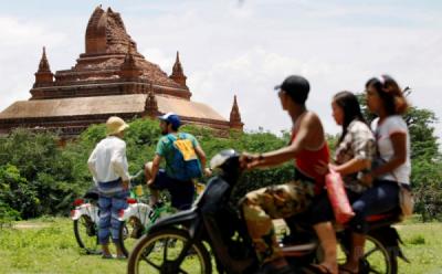 Turis Abadikan Pagoda yang Rusak Akibat Gempa di Myanmar