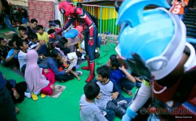 Ketika Superhero Hibur Anak-Anak Pengungsi Bencana Sulteng