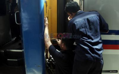 Gerbong KA Gaya Baru Malam Keluarkan Asap