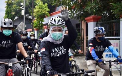 Sambil Gowes, Gubernur Khofifah Bagikan Masker ke Warga Blitar