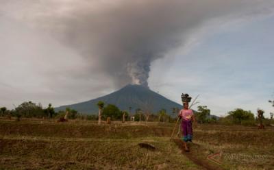 Status Gunung Agung Naik ke Level Awas, Warga Masih Beraktivitas di Ladangnya