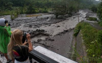 Ketika Turis-Turis Asyik Merekam Aliran Lahar Hujan Gunung Agung di Desa Muncan