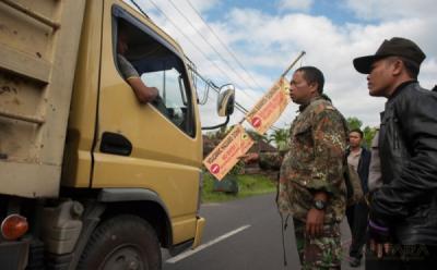 TNI-Polri Periksa Kendaraan Masuk Kawasan Zona Bahaya Gunung Agung