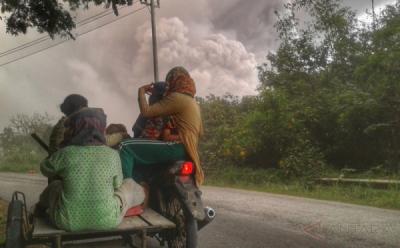 Debu Vulkanik Erupsi Gunung Sinabung Tutupi Desa Tiga Pancur Karo