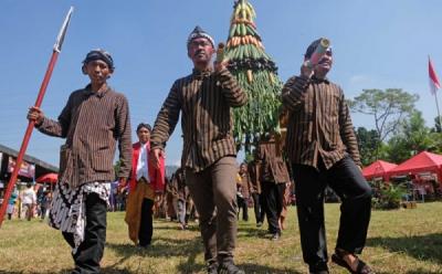 Warga Berebut Gunungan Tahu di Magelang