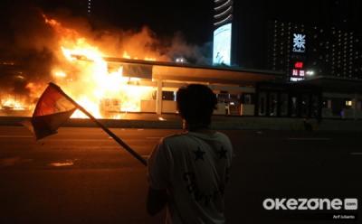 Aksi Anarkis Massa Bakar Halte Transjakarta Tosari