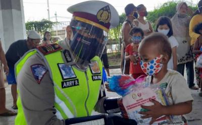 Hari Anak Nasional, Polisi Berikan Bingkisan untuk Anak-Anak Kolong Tol