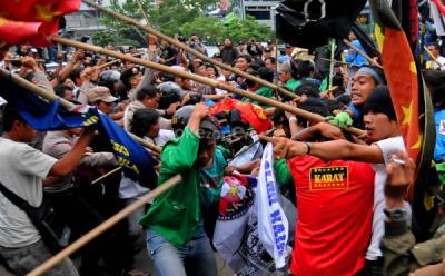 Bentrok Demo Mahasiswa di Makassar