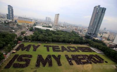 WOW!!! Ribuan Siswa Bentuk Formasi My Teacher Is My Hero untuk Cetak Rekor Dunia