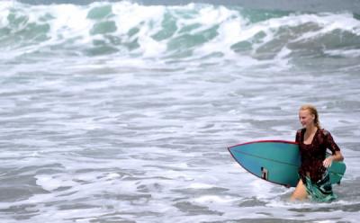 Sambut Hari Kartini, Sejumlah Wanita Berselancar dan Berbusana Kebaya