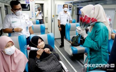 Sambut Hari Kartini, Pegawai KAI Bagikan Bunga di Stasiun Gambir