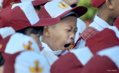 Siswa Menguap di Hari Pertama Masuk Sekolah