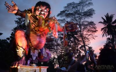 Serunya Parade Ogoh-Ogoh Jelang Hari Raya Nyepi Tahun Saka 1940 di Gianyar Bali