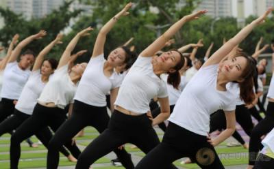 Tampil Kompak, Peserta Yoga Bersama di China Kenakan Kostum Hitam-Putih