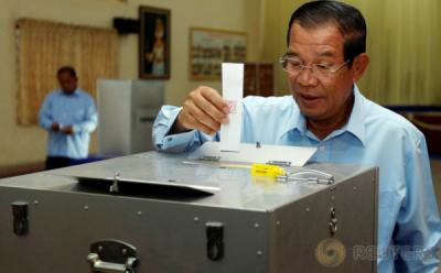 Perdana Menteri Kamboja Hun Sen Gunakan Hak Suara dalam Pemilu di Takhmao