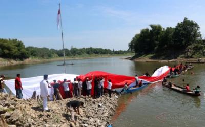 Perenang dan Warga Bahu-membahu Kibarkan Bendera Merah Putih di Perairan Bengawan Solo