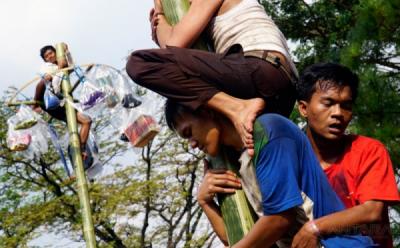 Ketika Penyandang Tunanetra Ikut Lomba Panjat Pinang HUT ke-72 RI