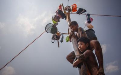 Melihat Keseruan Lomba Panjat Pinang Anak-Anak di Klaten