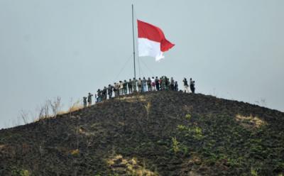 Panglima Kibarkan Bendera Merah Putih Raksasa di Bukit Piramida Aceh