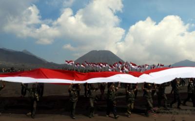 Bendera Raksasa pada HUT ke-71 Kemerdekaan Indonesia di Bromo