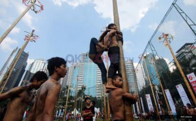 Serunya Lomba Panjat Pinang Massal di Senayan Jakarta