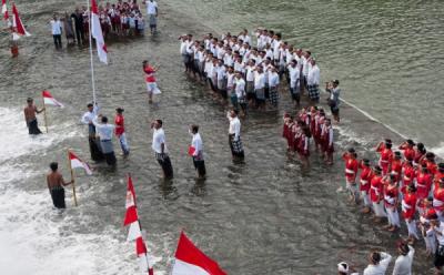 Upacara Bendera Peringati HUT RI ke-72 di Objek Wisata Sungai Unda Klungkung Bali