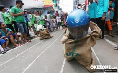 Serunya Bocah-Bocah Adu Balap Karung Memakai Helm