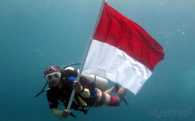 HARI MERDEKA : Pengibaran Bendera di Bawah Laut Pantai Malalayang Manado