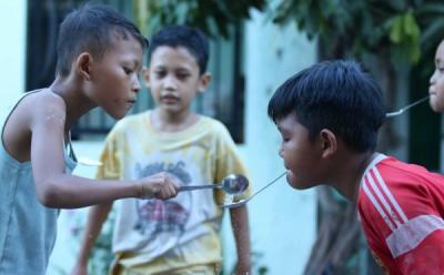 Keseruan Anak-Anak Ikuti Lomba Pindahkan Tepung dengan Sendok di Kampung Kenjeran