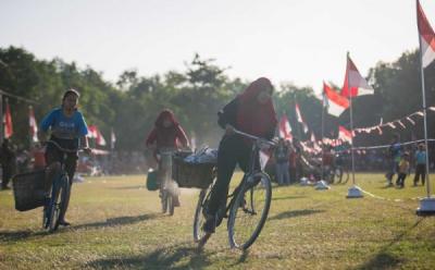 Lomba Balap Sepeda Ontel Bronjong Ada yang Terjatuh