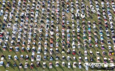 Foto Udara Umat Muslim Sholat Idul Adha di Masjid Al-Azhar