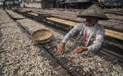 Melihat Aktivitas Pekerja Menjemur Ikan Asin di Kawasan Muara Karang