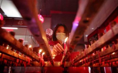Warga Tionghoa Melakukan Sembahyang di Malam Tahun Baru Imlek 2572