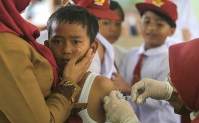 Ekspresi Siswa SD Negeri 21 Palembang saat Disuntik Imunisasi
