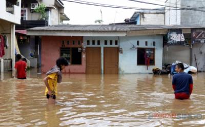 Banjir Merendam Pemukiman Warga di Kampung Makasar Jakarta Timur
