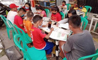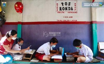Manfaatkan Wifi Gratis, Anak-Anak Belajar Daring di Pos Ronda Warga