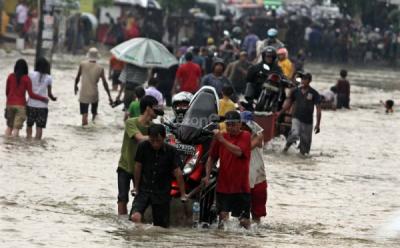 Warga Manfaatkan Jasa Angkut untuk Melintasi Banjir di Aceh Barat